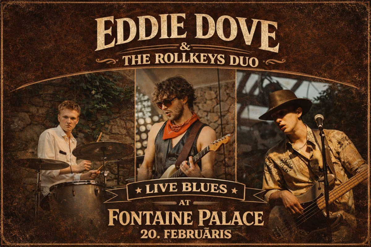 PIEKTDIEN, 20.februārī, pirmo reizi “Fontaine Palace” telpās uzstāsies Eddie Dove & The Rollkeys Duo! Kāds svaigāks meistars, kāds gatavāks meistars, taču tas nemaina šīs trijotnes kopīgu mīlestību pret blūza mūziku un vēlmi radīt kārtīgu rokenrolu uz skatuves!